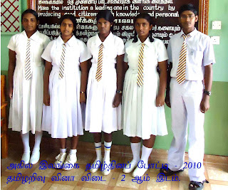 எமது கல்லூரி மாணவர் குழு கொழும்பிலே நடைபெற்ற 2010 ஆம் ஆண்டிற்கான தேசிய மட்ட தமிழ் மொழித்தின தமிழறிவு வினாவிடைப் போட்டியில் பங்குபற்றி தேசிய நிலையில் இரண்டாமிடத்தைப் பெற்றுக் கொண்டனர். இக் குழுவில் பங்குபற்றிய மாணவர்கள் வருமாறு..